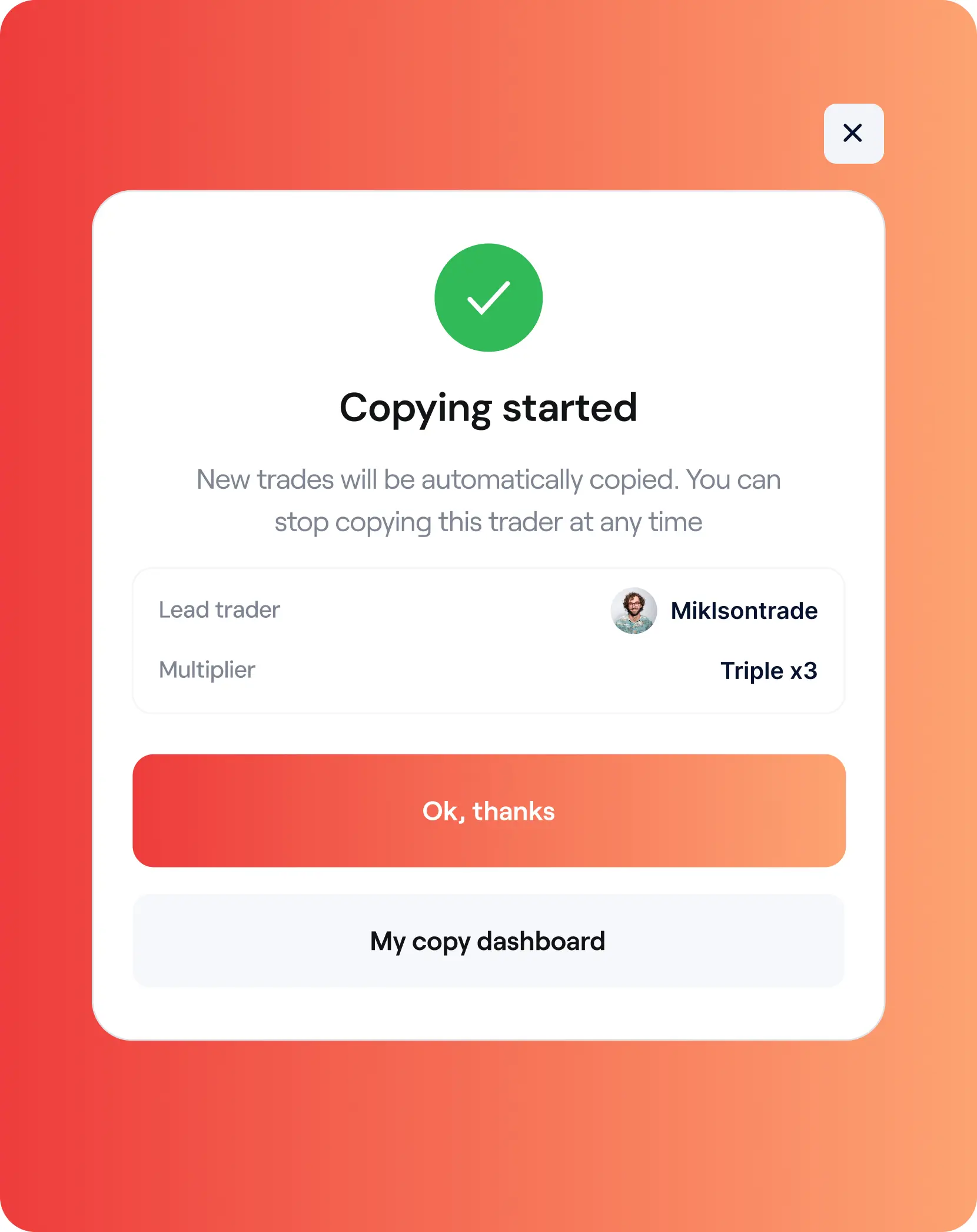 Choose from top-performing traders with years of experience and copy their moves in just a few clicks.
